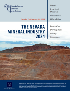 The Nevada Mineral Industry Report is an annual report that describes the state's mineral, oil and gas, and geothermal activities and accomplishments. The report describes those accomplishments in Nevada for 2024, which includes production, reserve, and resource statistics; exploration and development -- including drilling for petroleum and geothermal resources, discoveries of orebodies, new mines opened, and expansion and other activities of existing mines; and a directory of mines and mills. NBMG Special Publication MI-2024.